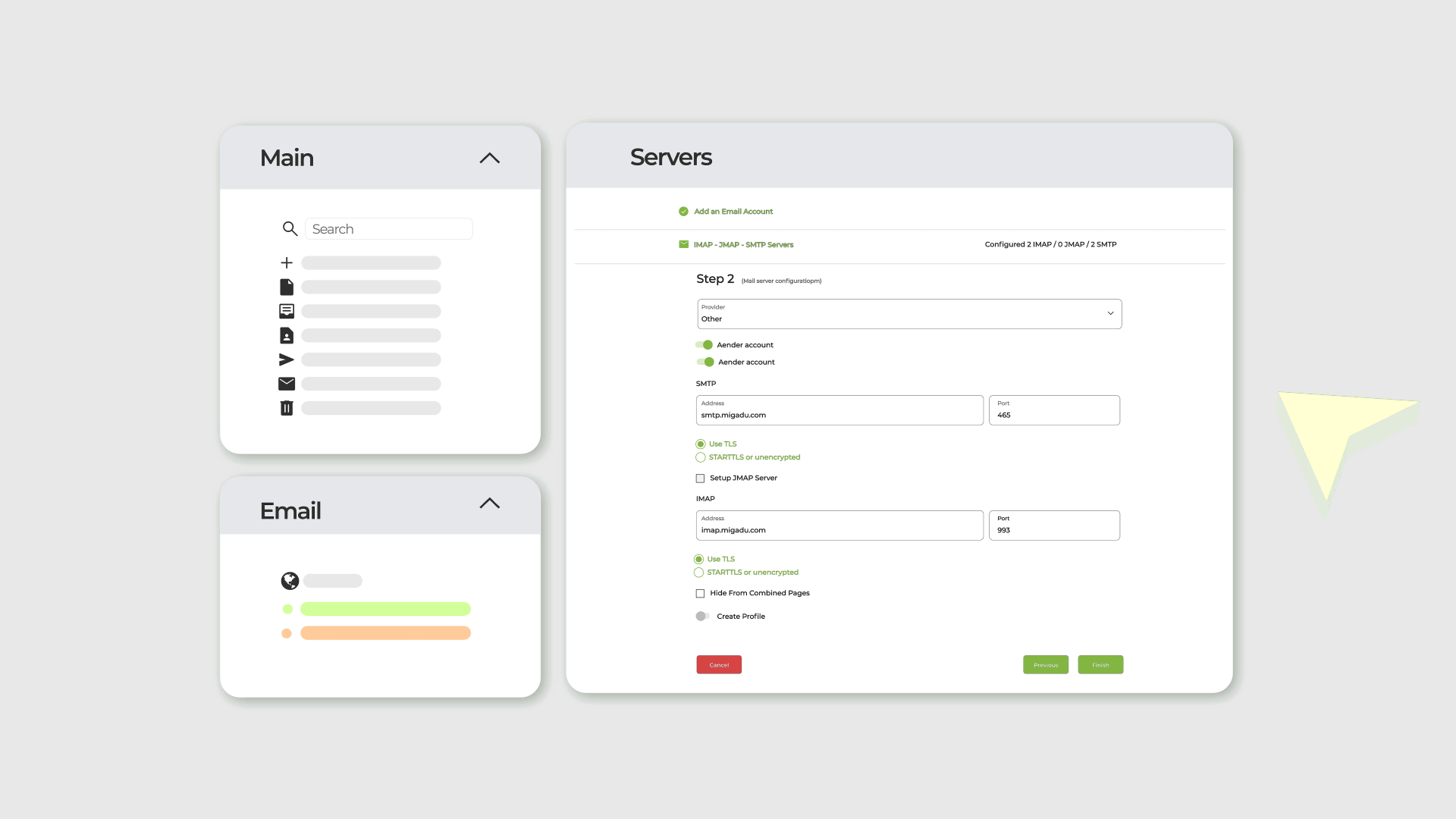 Flexible profiles to combine IMAP accounts with SMTP accounts and setup signatures and reply-to details.